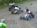 2nd Season at Oswego Speedway Kartway: 2007 & 12th Season at Galletta's: 2007: Was by far one of our busiest, most competitive and talent-stacked. Between the Oswego Kartway (back then simply known as the Oswego Speedway Dirt Track) and our Galletta's track, 57 different drivers ran a combined 28 features, but the dominant factor all season on both tracks was Matt Stevens, as he won 14 of the 28 Mixed Motor gas stocker features on the two tracks while 8 other drivers (Chris Stevens, Kyle Reuter, Dick Dann, Melissa Gabel, Ryan Coleman, Eric Raponi, Gary Miller Sr., and Joe Hayden) divided up the rest of the HARD fought victories. Again there was controversy between OHV and FH motors racing in the same class, and while Matt was the man to beat in a flathead, the OHVs were proving to be too powerful for anyone else to touch. That was until the Kartway's 1st Classic, a 15-kart/50-Lap event for the mixed-motor 1-WD 'Gas Stocker' class, where a few drivers battled it out in an exciting race, but Chris Stevens emerged on top on lap 50 to avenge himself for getting wiped out several times earlier in the season by one of the OHV Outlaw karts in the race. It also contained one of the scariest wrecks in our history (and one that has garnered by FAR the most hits on YouTube of our hundreds of videos). However, Matt Stevens defeated a VERY talented cast of characters (including his brother Chris, Kyle Reuter, Ryan Coleman, Buddy Cottom and Mike "MC" Howell amongst others) to win both track Championships and the 12th Annual showing of the Galletta's Klassic 200! The only true downer to the season was Wes 'Ogre' Stevens' bone-busting crash in the '07 Klassic, which forced him out of weekly competition. More (including detailed race descriptions and hundreds of race videos) can be found here.