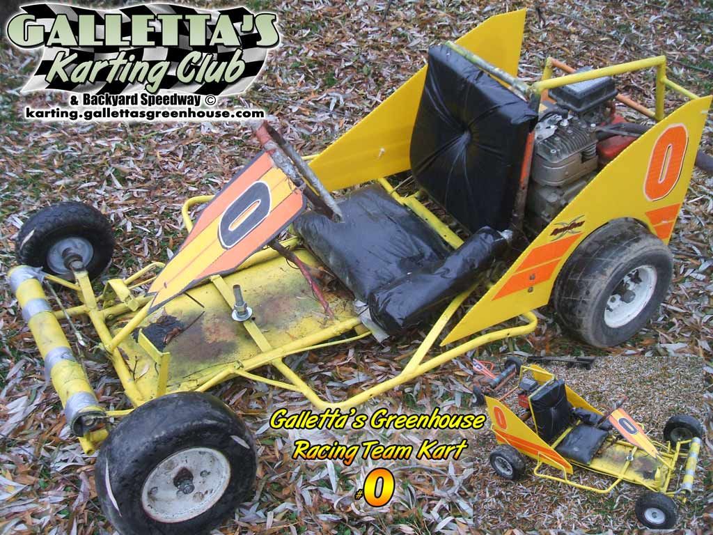 The Galletta’s Greenhouse Racing Kart #0 is a Single-Wheel-Drive Racing Kart acquired by the club as a donation kart in the year 2002, and is traditionally one of the quickest karts in the fleet. It was a prefabricated kart of unknown origin and manufacture but was rebuilt to Galletta’s Karting Club specifications by Wesley James “Ogre” Stevens and Matthew Stevens. Some “lesser” drivers through the years failed miserably and claimed that only Chris and Matt have fast karts and all the rentals are slow to have been empirically proven wrong time and time again with especially the Galletta’s #0, as good drivers get impressive wins in it, and bad drivers… well… suck. Which one are you?