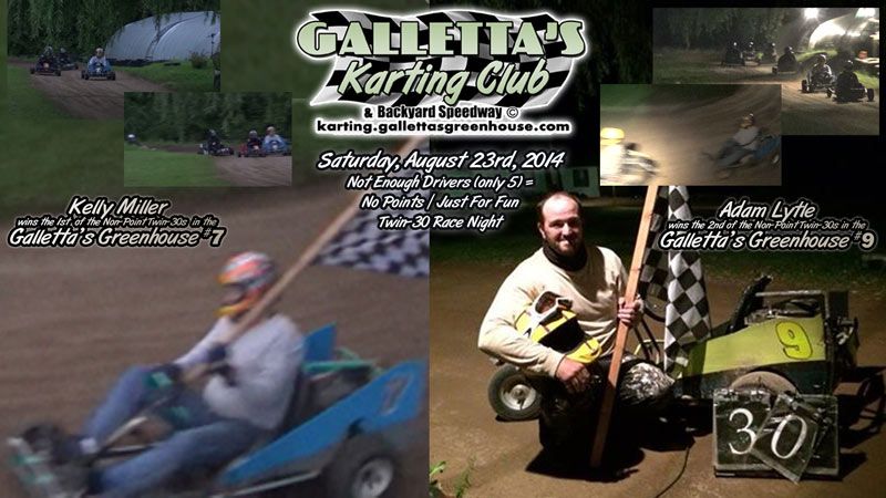 8/23/2014 – Not Enough Drivers & Camera-Operators = No Points / For Fun Race Night Twin 30s won by Kelly Miller & Adam Lytle