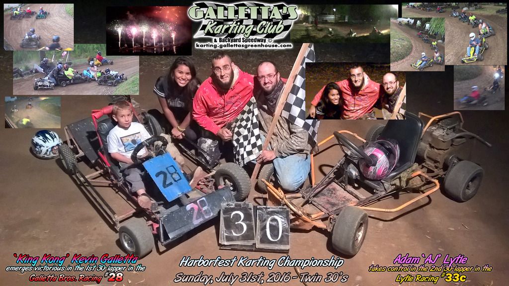 * = Chris Stevens attempted to start in the #4. It stalled before the green flag dropped and it was unable to be restarted. Chris then jumped into the #8 and finished all 60 laps in it, so will not be accessed the -5pts. kart change penalty. At least one full green flag lap must be completed to count a kart change penalty. Under Galletta’s rules, one can change karts between races, but once a race starts and one lap is completed, the penalty will count.